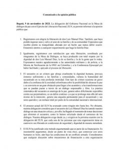 Luis Manuel Díaz, padre del jugador colombiano Luis Díaz fue liberado hoy, luego de 12 días secuestrado por el ELN el pasado 28 de octubre cuando se desplazaba con su esposa Cinelis Marulanda en una vía en Barrancas, La Guajira.