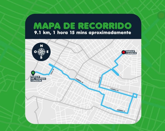 El recorrido se iniciará a las 7:00 de la noche desde el Parque Sagrado Corazón y finalizará en el Parque Cisneros, tendrá una longitud de 9.1 kilómetros y una duración aproximada de 1 hora y 15 minutos.