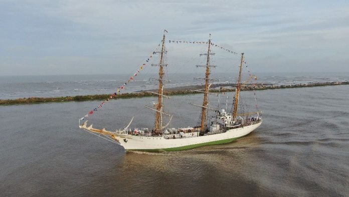 El buque ARC `Gloria’ llegó este viernes al gran Malecón del Río en Barranquilla.