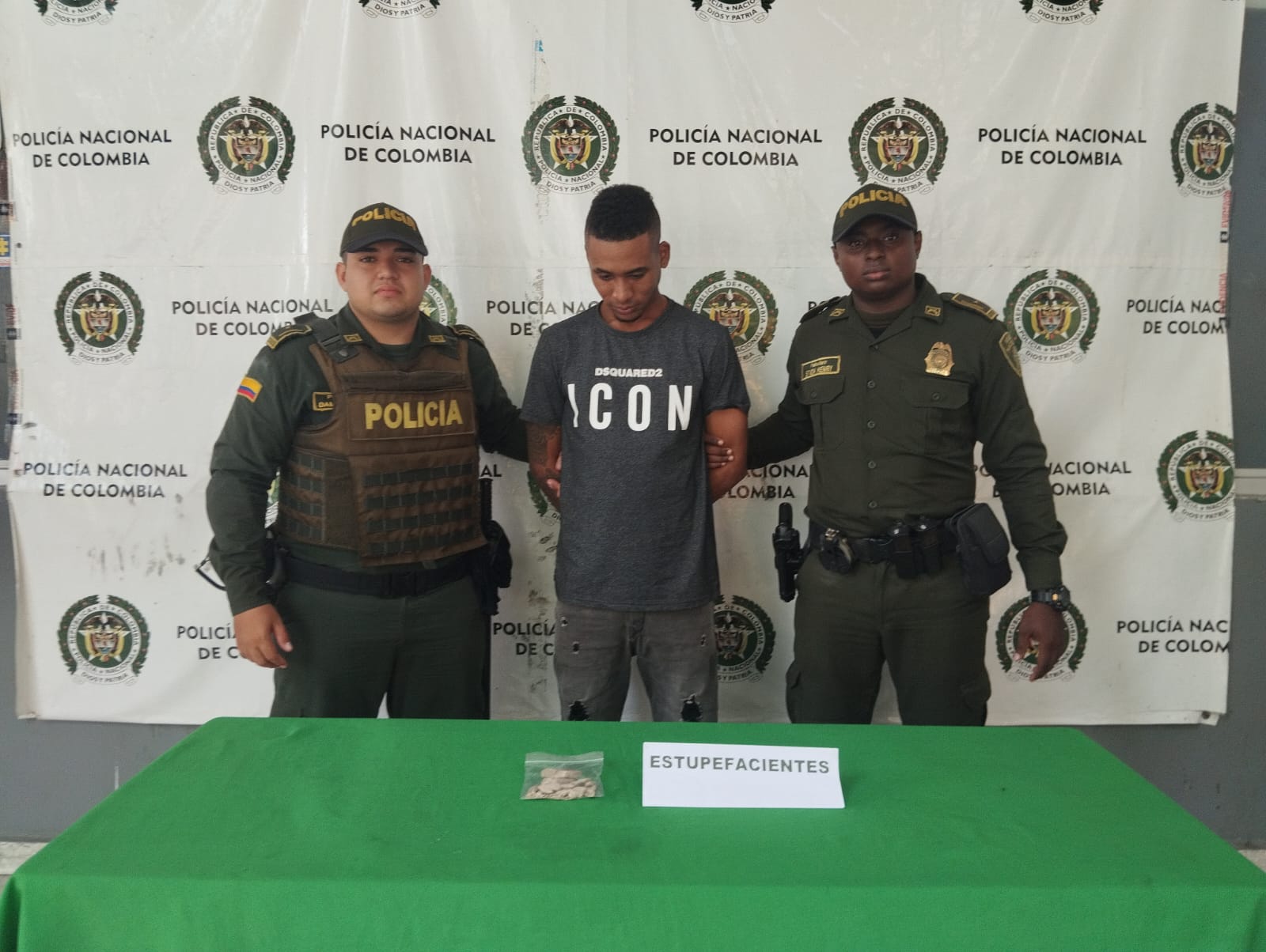 Policía Metropolitana de Barranquilla, a través de unidades del modelo nacional de vigilancia comunitaria por cuadrantes, capturó en flagrancia a una persona portando estupefacientes