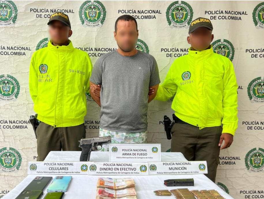 En el barrio San José de Los Campanos fue desplegada una orden de registro y allanamiento, donde fue capturado un hombre conocido como ‘Casandra’, de 44 años, a quien le fueron incautados una pistola 9 milímetros, un cargador, 40 cartuchos de diferentes calibres, cuatro celulares y dinero en efectivo.