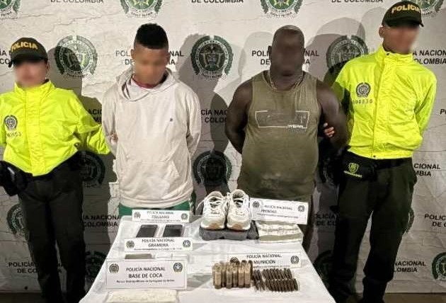 De igual forma, en el corregimiento de Pasacaballos, fueron capturados ‘El gordo pitalúa’ y ‘El moisés’, a quienes les incautaron 43 cartuchos sin percutir de diferentes calibres, estupefacientes, dos grameras, empaques para dosificar las sustancias y una motocicleta. Alias ‘El gordo pitalúa’, presenta una anotación judicial como indiciado por el delito de lesiones personales (2015).