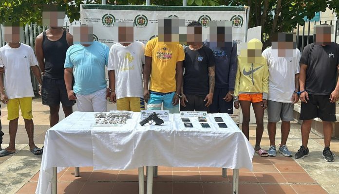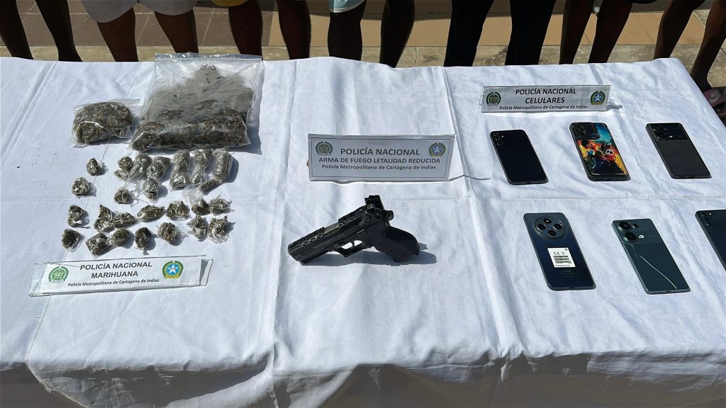 Durante el procedimiento fueron incautadas 400 dosis de marihuana, una pistola calibre 9 milímetros y seis celulares. Los capturados figuran registros judiciales por delitos de porte ilegal de armas de fuego, hurto agravado, receptación y violencia intrafamiliar.