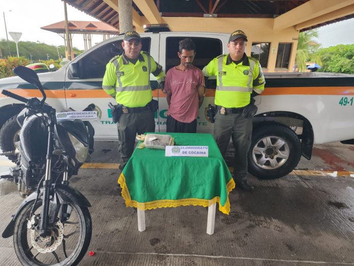 En un operativo de control vial realizado por la Policía del Atlántico en la vía Barranquilla-Cartagena, fue capturado en flagrancia un hombre de 43 años de edad, quien transportaba 1.200 gramos de clorhidrato de cocaína.
