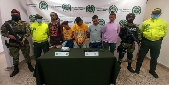 En el marco de lucha frontal con el delito, en las últimas horas, en coordinación con la Fiscalía General de la Nación y El Ejercito Nacional, se logró la desarticulación del grupo delincuencial común organizando “los turistas”. Cuatro personas fueron detenidas mediante orden judicial y una en flagrancia. En medio de los allanamientos fueron incautados 1.084 gramos de marihuana.