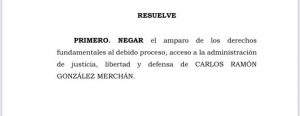 Respuesta de la Corte Suprema de Justicia a la tutela presentada por Carlos Ramón González Merchan.