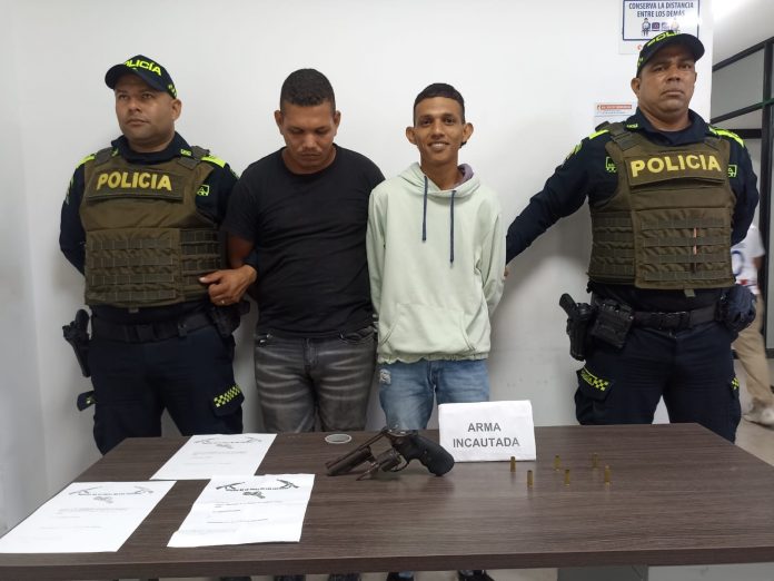 La captura de estos presuntos delincuentes se presentó a la altura de la calle 56 con carrera 23 barrio Villa Katanga, momentos en los que los presuntos delincuentes intentaban escapar posterior a disparar contra la fachada de un establecimiento.