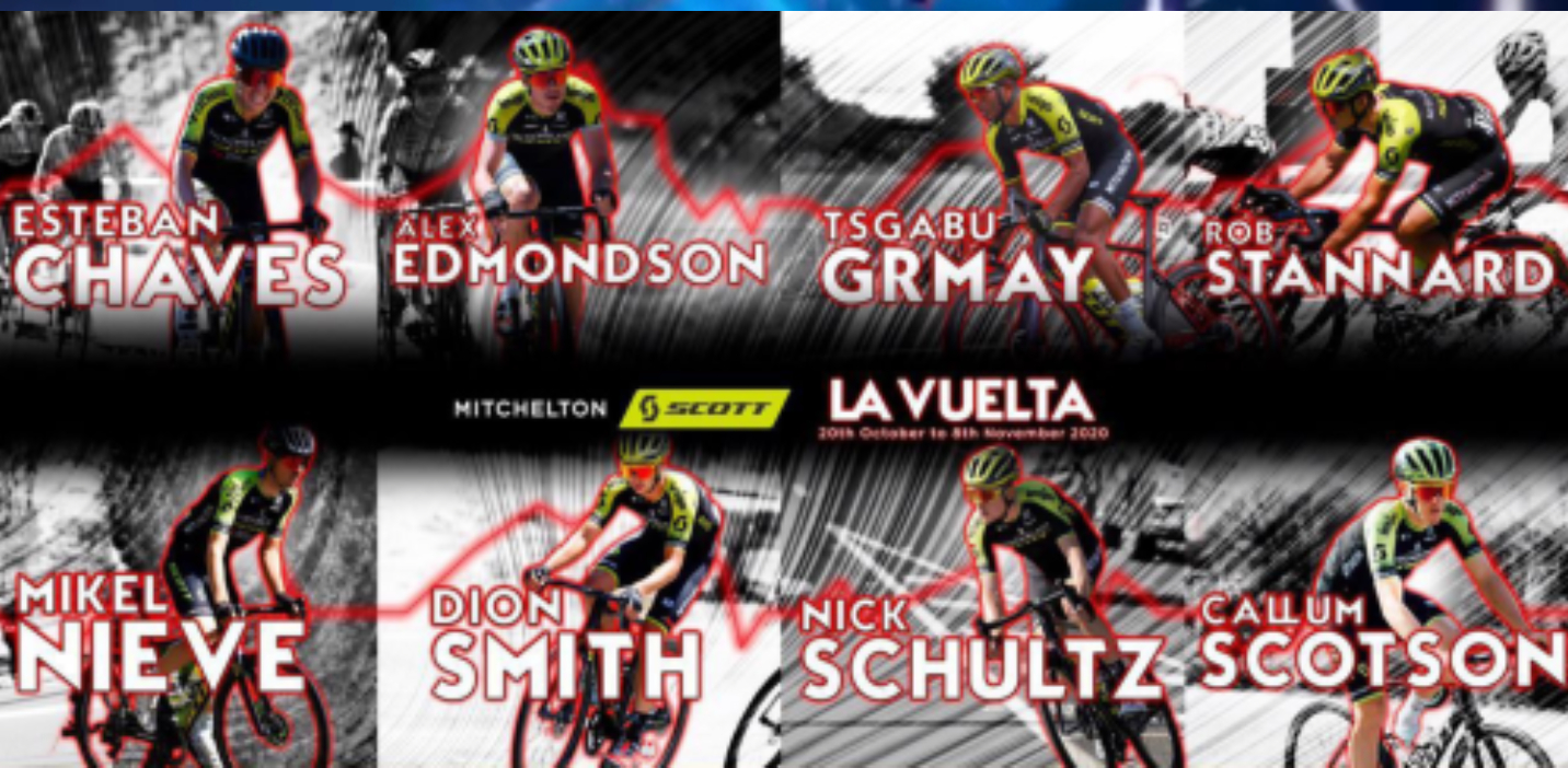 El equipo Mitchelton Scott estará representado en la Vuelta 2020 por Esteban Chaves, Alexander Edmondson, Tsgabu Grmay, Mikel Nieve, Dion Smith, Nick Schultz, Callum Scotson y Robert Stannard.