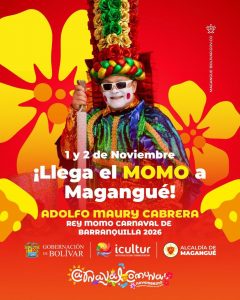 El Carnaval de Barranquilla participará en el Carnaval Comunal Novembrino de Magangué con la presencia del Rey Momo del Carnaval 2026, Adolfo Maury Cabrera, quien estará como invitado especial los días sábado 1 y domingo 2 de noviembre.