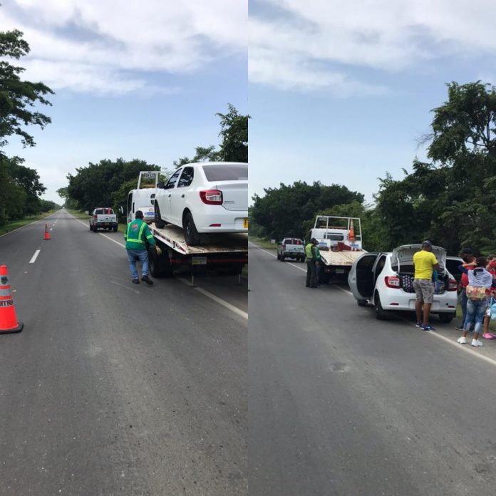 El automotor de color blanco, marca Logan y de placa FXW845, fue sorprendido a la altura del kilómetro 18 de la Troncal de Occidente, en cercanías al municipio de Turbana.