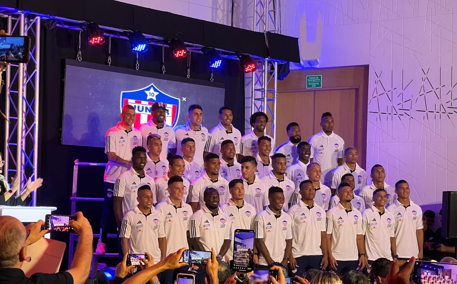El máximo accionista del Junior, Don Fuad Char, fue el encargado de darle la bienvenida a la plantilla del 2024 y a todos los asistentes a la presentación del equipo que afrontará la Liga colombiana, Copa Colombia y Copa Libertadores.