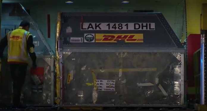 Seguimos adelante con el cronograma de recepción de dosis. A las 5:06 a.m., en el vuelo D5305 de DHL, llegó primera entrega de 23.400 vacunas, de un lote de 100.620 que hace parte de negociación bilateral con Pfizer. Mañana se completa el envío con arribo de 77.220. #YoMeVacuno pic.twitter.com/hyaYMN7tyr