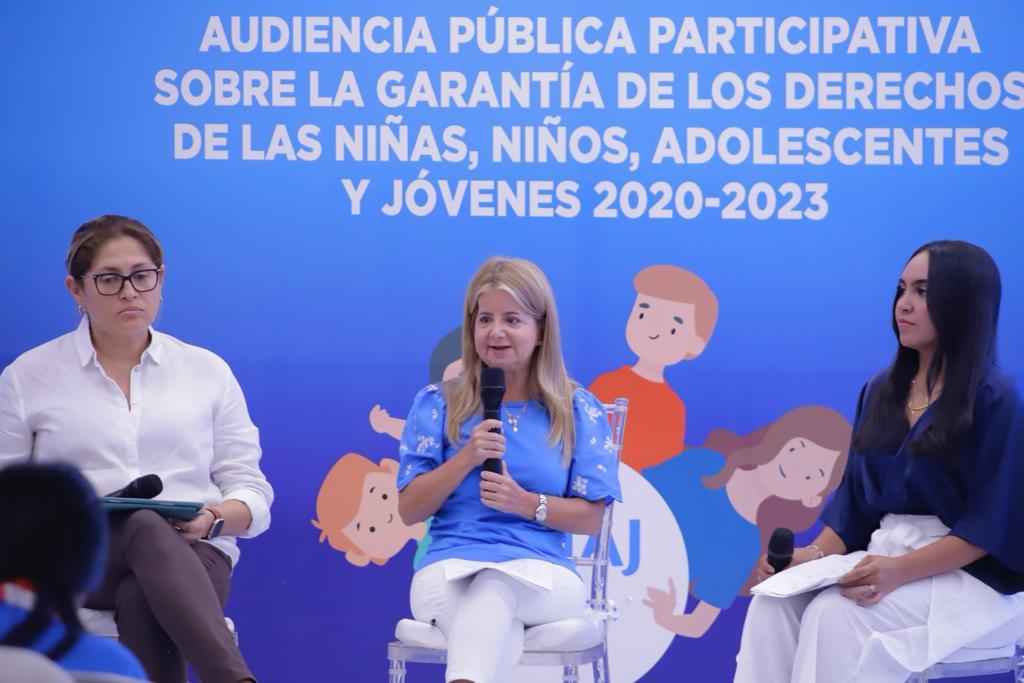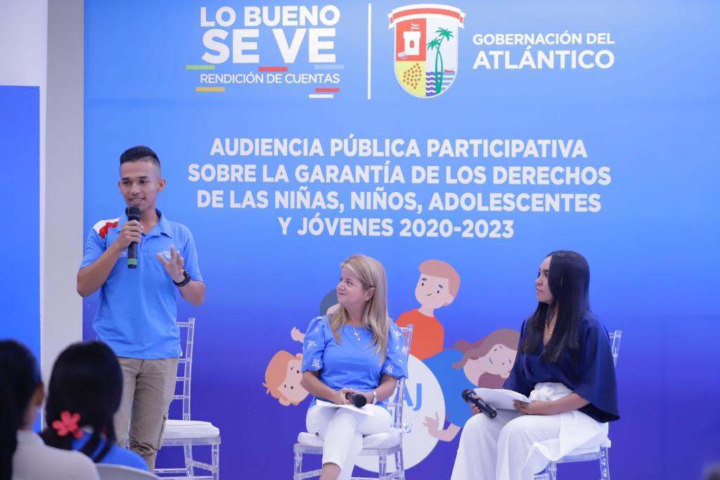 La gobernadora, Elsa Noguera, lideró la Audiencia Pública Participativa en la que dio a conocer los logros y avances de su gestión 2020-2023, para la garantía de los derechos de las niñas, niños, adolescentes y jóvenes en el departamento.