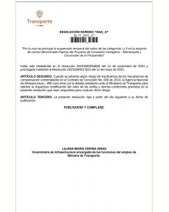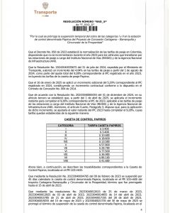 El Ministerio de Transporte anunció una nueva prórroga de seis meses en la suspensión del cobro del peaje Papiros, ubicado en el municipio de Puerto Colombia, Atlántico. Esta medida, que entrará en vigor a partir del 12 de noviembre, aplica para los vehículos de categorías 1 y 2, tal como se ha dispuesto en las extensiones anteriores.