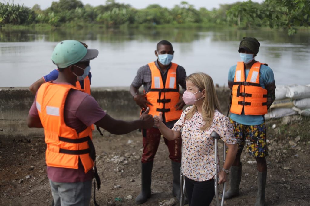 “Hoy podemos decir qué hay algo de tranquilidad en esta zona, porque hemos trabajado en equipo, hemos encontrado a grandes líderes que son los jóvenes de las comunidades que le pusieron el alma a este trabajo desde el sábado cuando arrancó la crisis. Ellos decidieron actuar y han venido llenando todos los sacos de arena y sobre todo instalando las murallas al lado del Canal del Dique para evitar que el agua llegara hasta los predios y se produjeran inundaciones. Nos sentimos orgullosos de estos jóvenes, de estos líderes que saben que en momentos de crisis hay que actuar”, sostuvo la mandataria.