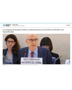 El pronunciamiento del Alto Comisionado se da tras una serie de acciones militares ordenadas por el Departamento de Guerra de Estados Unidos, que asegura actuar contra redes internacionales del narcotráfico. Sin embargo, la ONU advirtió que estas intervenciones podrían constituir graves violaciones a los derechos humanos.