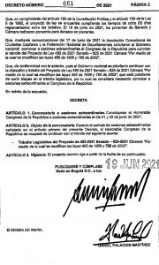 Mediante el decreto 661 de 2021 el presidente de la República, Iván Duque convocó a señores extraordinarias al Congreso de la República.