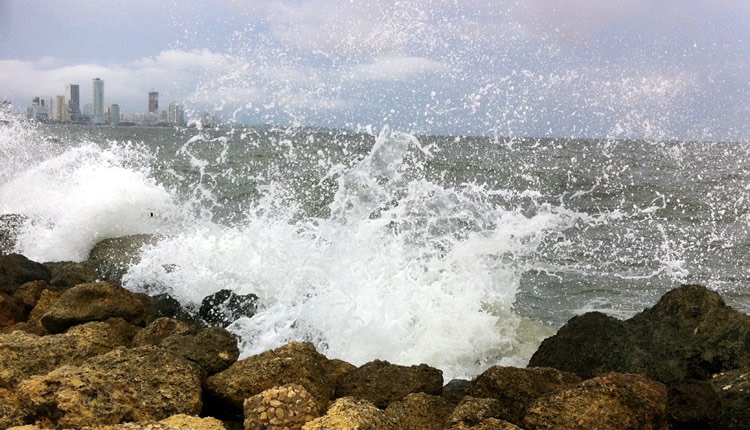 Cartagena tiene el mar desbordado debido a la convergencia del mar de leva y la marea alta.