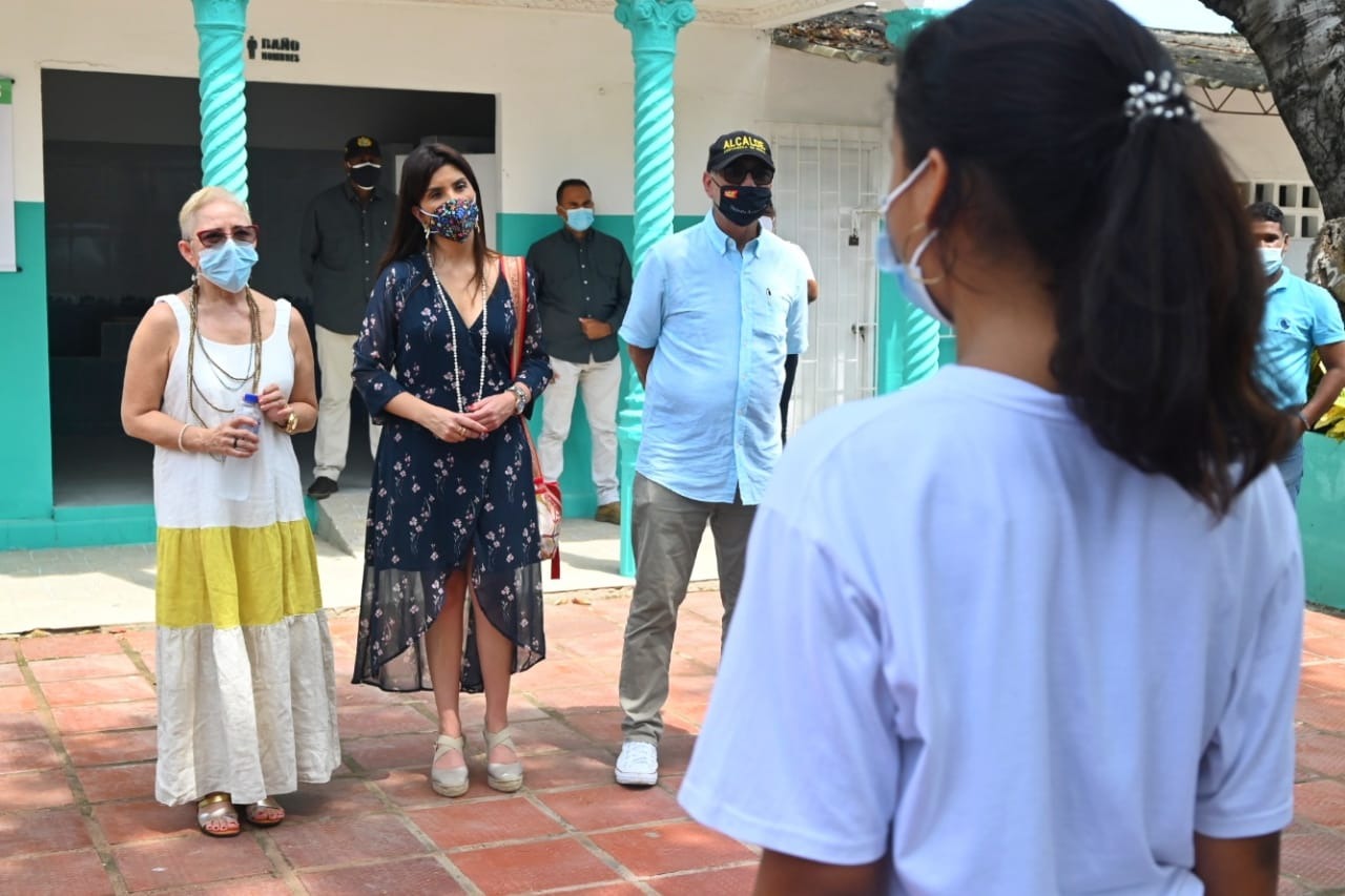 Una visita que permitió conocer el avance del retorno a clases presenciales de los estudiantes de las instituciones educativas oficiales de Cartagena realizó la ministra de Educación, María Victoria Angulo, en compañía del alcalde, William Dau, y la secretaria de Educación, Olga Acosta Amel